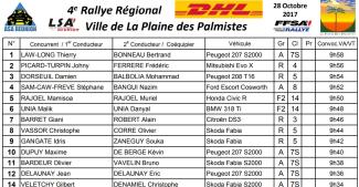 Ce samedi 28 octobre 2017 aura lieu le 4ème rallye régional de la ville de la Plaine des Palmistes. Voici la liste des engagés: