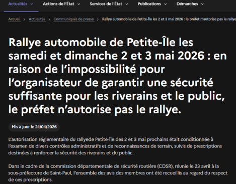 Rallye de Petite-Île annulé : une décision sécuritaire qui interroge l’avenir du rallye
