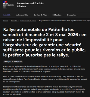 Le sous-préfet de Saint-Paul a confirmé cette analyse, considérant que « l’organisateur […] n’est cependant toujours pas en mesure d’apporter des garanties suffisantes contre la survenance d’un accident entre un véhicule de course et un piéton présent aux abords ».