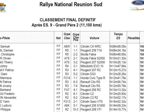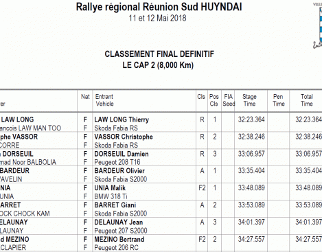 Résultats du Rallye Régional Sud La Réunion des 11-12 Mai 2018