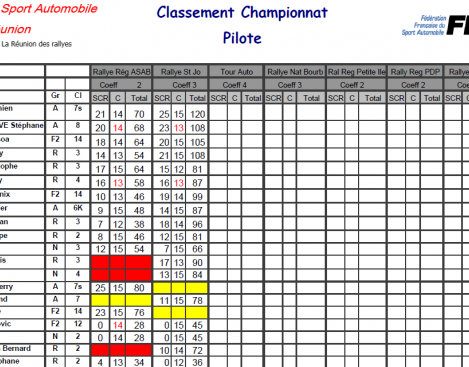 Classement provisoire championnat de La Réunion des rallyes 2016
