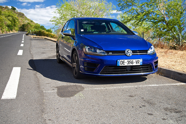 Premiers tours de roues, la direction s’avère douce et bien calibrée au fur et à mesure que le rythme augmente. J’aborde une route de montagne que je connais bien, peu fréquentée et permettant de juger à la fois de l’agilité, de la stabilité et de la motricité. La Golf s’est très bien tirée dans cet exercice, capable de mordre la route avec son train avant précis, diablement accrocheur et grâce à un train arrière un peu plus mobile qu’à l’accoutumée. Du coup, l’auto se place avec une certaine facilité et sécurité. Il suffit de pointer l’avant, l’arrière se place et d’écraser la pédale au point de corde. Les vitesses de passage sont météoriques, la motricité exceptionnelle et l’intervention de l’Haldex de 5ème génération imperceptible. Enfin ! ce système ne requiert plus de temps de réponse, le comportement routier s’en trouve donc de meilleure qualité car il ne nécessite pas de corrections au volant. Enfin, l’auto se fiche de connaitre l’état de la route, ne perdant pas de sa superbe si le revêtement se fait moins bon. Un vrai régal puisque la R absorbe les irrégularités dans un confort d’excellent niveau.