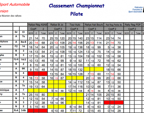 Classement du championnat de la Réunion de Rallye 2016 au 01 octobre 2016